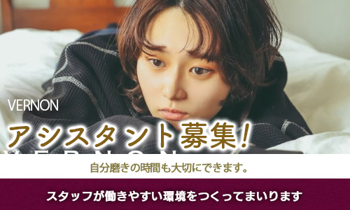 「VERNON(バーノン)」では、美容師アシスタントを募集しています!私たちのサロンは、美容師として成長するための最適な環境を提供しています。アシスタント期間は、自分の美容人生の軸を作る大切な期間。さまざまなスタイリストの仕事をサポートしながら、自分の持ち味や個性を最大限に伸ばすことができます◎