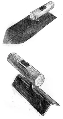 「左官工」は建築物の外壁、床、天井などを、セメント、モルタル、漆喰、珪藻土で美しく塗装(塗り壁)をする職方のこと。その塗装の際に使用するのが「鏝(こて)」。「左官の仕事はこれなしには務まらない」と言われるほど、左官仕事の代名詞的な存在です。左官鏝は、片手で握れる大きさの取手に、鋼やステンレスの板がついており、その板で壁を均すようにして塗料を塗り重ねていきます。また、左官は壁塗りの他にも多彩な工事があり、材料や場所に応じて使用される鏝も違います。そのため、左官鏝の種類はとても多く、特殊用途を含めると千種類以上もあると言われています。例えば「半焼き塗付け鏝」は、「半焼き」の文字通り鋼が低温での焼入れを施された鏝で、焼きが甘い為、鏝が滑らなくて平滑に塗りやすい事が特徴です。「本焼き塗付け鏝」は半焼きに比べると硬度があるため、鏝切れが良い一方で平滑に塗るには技術が必要です。ですが、使い込むほど扱いやすくなってくるので、まさに職人道具として愛着の湧くものになっていきます。鋼の焼き入れ方だけでなく、その形状が90度に曲がっており、壁の角を塗るために特化した鏝もあれば、クシ型で壁に模様をつけることに特化した鏝もあります。 メーカーで生産されるものから、職人の手によって作られるものまで「左官鏝」と一口に言っても、その世界は大変奥深いものなのです。