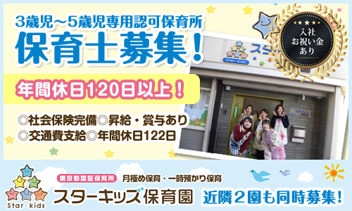 スターキッズ保育園 3~5歳児の認可保育園 定員47名 保育士さん募集!の求人