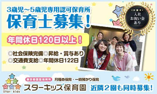 スターキッズ上野桜木保育園 0~2歳児の認証保育園 定員22名 保育士さん募集!の求人