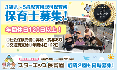 スターキッズ谷中保育園 0~2歳児の認証保育園 定員26名 保育士さん募集!の求人
