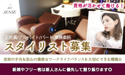 企業の特色1: 夢や目標に対する応援体制hair SENSE 平井は、「お客様に喜んでもらう」という思いがあれば、どんな夢や目標も応援する社風が特長です。スタイリストとして高収入を目指したい方、店長や幹部になりたい方、独立したい方など、様々な目標を設定し、それを全力でサポートします。そのため、働きながらキャリアアップを目指す方には特におすすめの職場です。