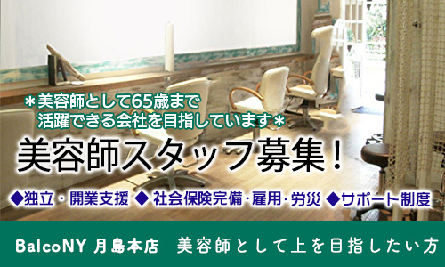 「月島」駅周辺の街情報当社が立地する「月島」駅周辺は、都心アクセスの便利さと落ち着いた街並みが魅力の地域です。駅近の美容室としては理想的な場所に位置しており、都営大江戸線「月島駅」から徒歩2分という利便性が、新規のお客様にとっても働くスタッフにとっても非常に便利です。